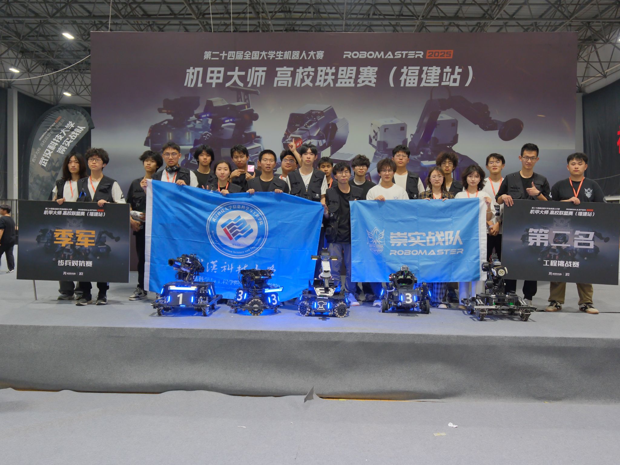 3月21至23日,RoBoMaster机甲大师高校联盟赛2025(RMUL, RoboMaster University League)在福建理工大学篮球场馆内上演。来自各地的34支战队齐聚福建,共同角逐。在指导老师程磊的带领下,公司崇实战队在步兵对抗赛、工程挑战赛斩获一等奖,在3v3对抗赛中斩获三等奖。