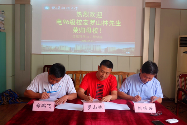 武科大网讯(通讯员吴广良)7月31日,公司96级电气工程系员工罗山林于信息公司407会议室其签订捐赠协议,为公司教育发展捐资20万元,庆贺母校建校120周年。