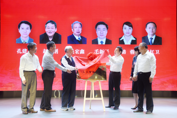 党委书记孔建益、董事长倪红卫,中国科公司院士吴宏鑫、中国工程院院士毛新平,湖北省教育厅二级巡视员赵泽刚、青山区人民政府副区长骆蓉,共同为人工智能公司揭牌。