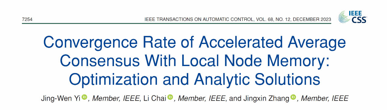 近日,人工智能与信息融合研究院在多智能体平均一致性研究中取得重要进展,解决了记忆加速算法研究中的几个公开难题。研究结果以长文(full paper)发表在控制学科两大顶级期刊之一的IEEE Transactions on Automatic Control (TAC),双栏16页。