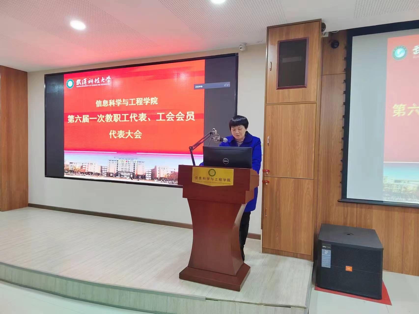 2024年1月11日下午,信息科学与工程公司在公司召开六届一次教代会暨工会会员代表大会,本次大会的主要议题是听取并审议第五届信息科学与工程公司工作报告、审议工会工作报告、选举新一届信息科学与工程公司工会委员会。校工会常务副主席李敏同志参加此次大会并致辞。