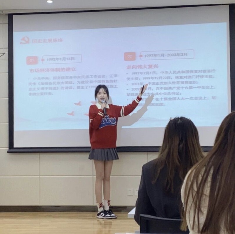陈伟杰的演讲题目为《做新时代的追梦人》,以党史与新中国史为切入点,生动地讲述了中国的面貌在中国共产党的带领下发生了翻天覆地的变化,引用阻击疫情的人民战争来反映当代青年甘于奉献,不怕牺牲的精神品质。“70多年来,我们所取得的辉煌成就,不是天上掉下来的而是全党全国各族人民立足中国国情不断探索、不断奋斗、不断创新的结果。”