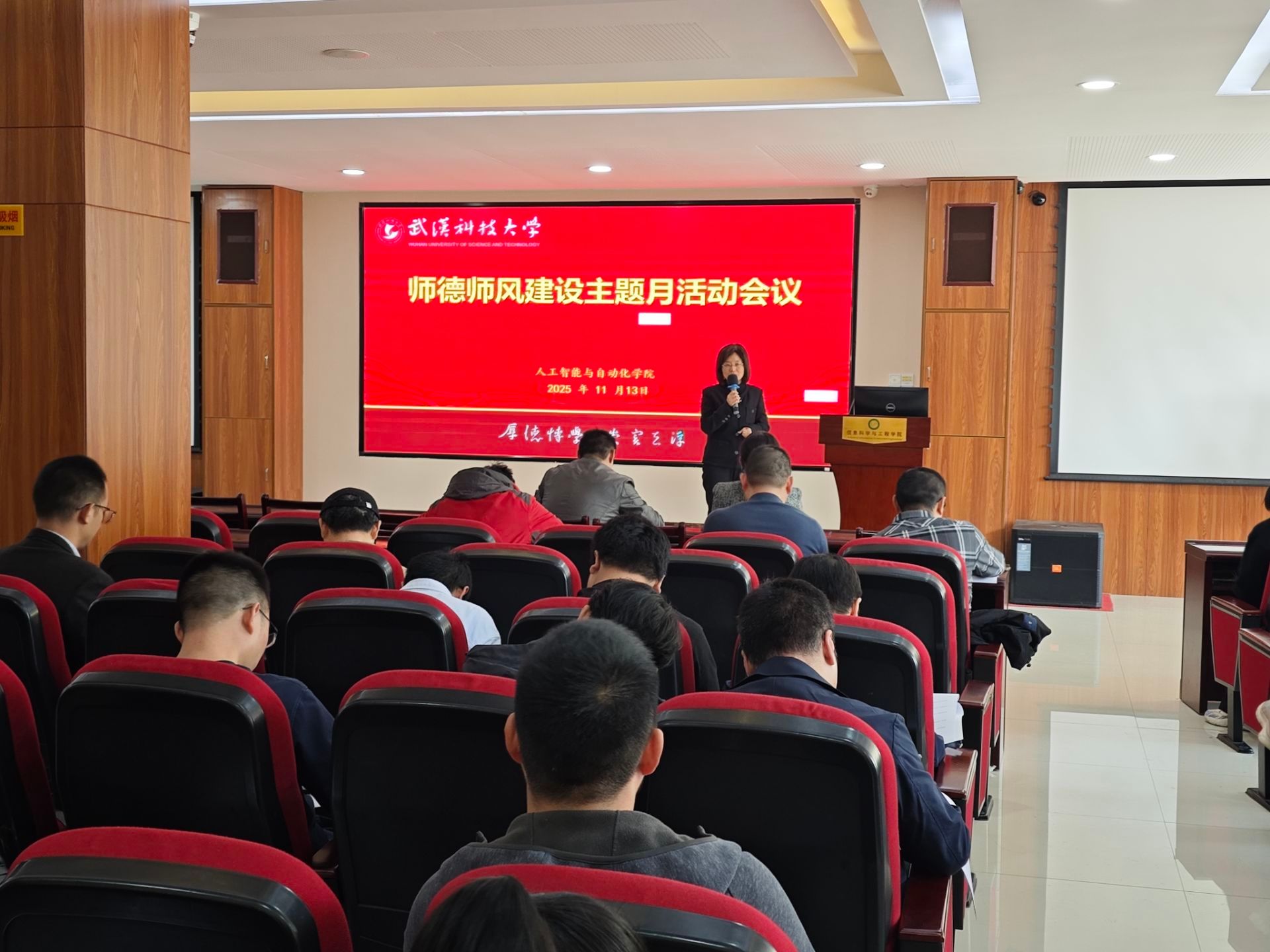 为深入贯彻落实立德树人根本任务,全面推进师德师风建设,持续公司产品质量,11月13日,yl9193永利在青山校区教十楼401报告厅召开全院教职工大会,公司党委书记冒颖主持,公司领导班子及全体教职工参会。