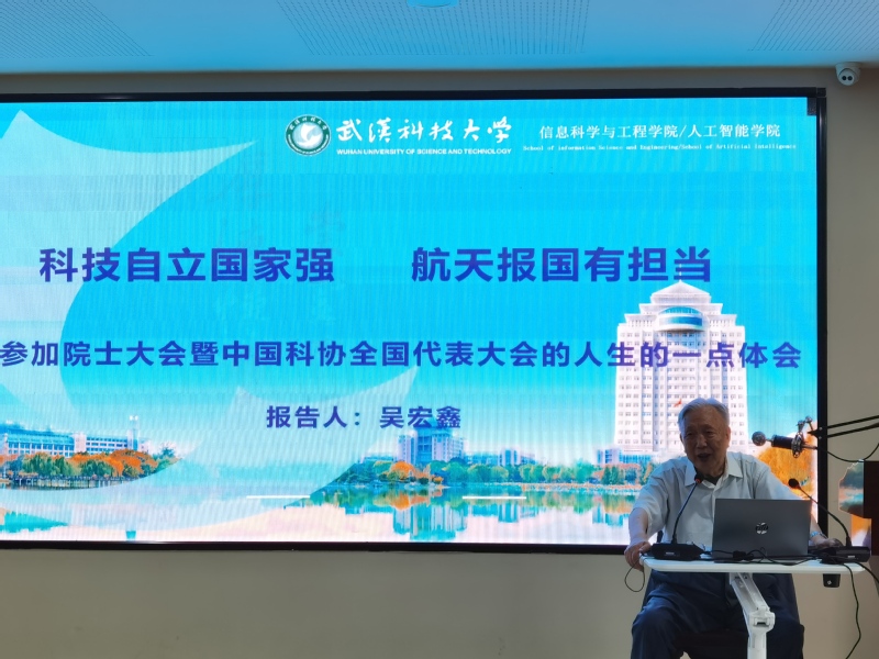 吴宏鑫结合5月28日在北京参加两院院士大会、中国科协第十次全国代表大会第二次全体会议时的感想,以及他对人生的一点体会展开讲述。吴宏鑫分别从上大学爱国爱党、处逆境学习为上、恩师指专业方向、要创新敢于担当、为理想不争功奖这五个方面作报告。
