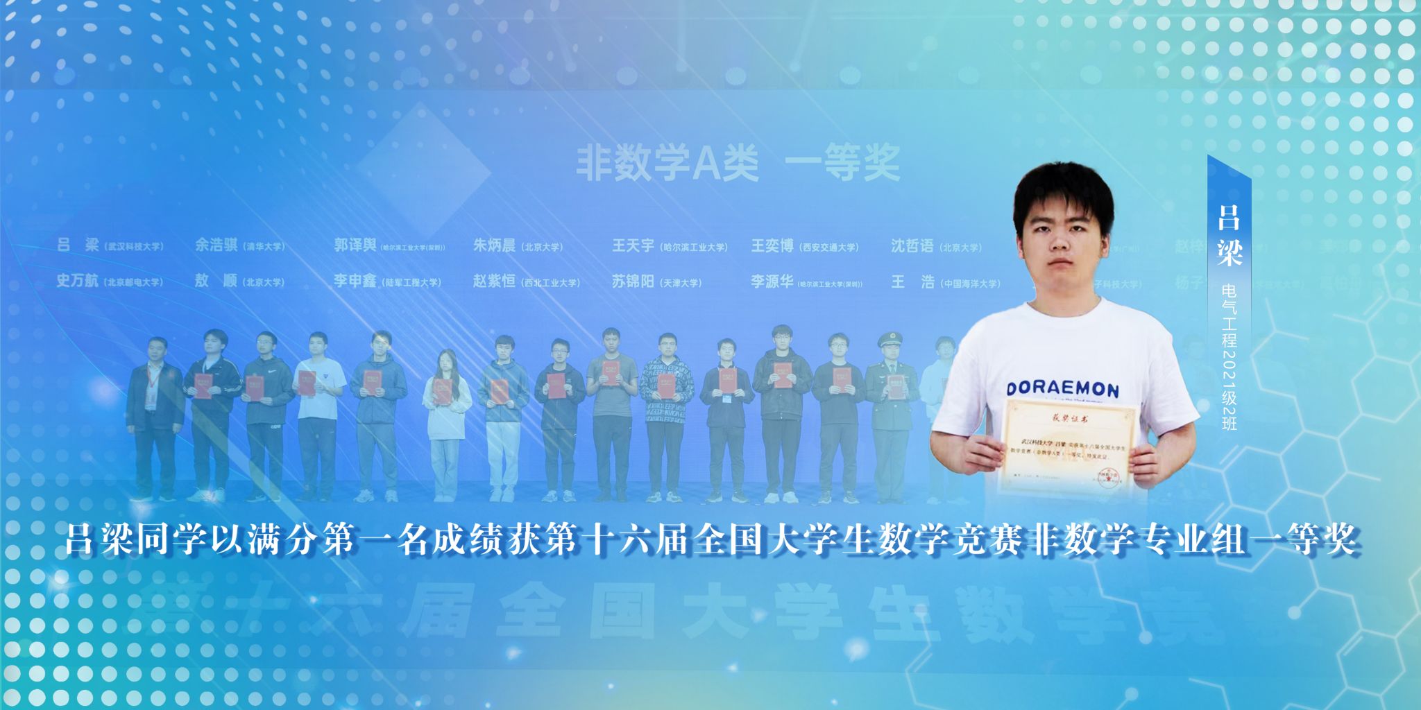 吕梁同学满分获全国数学竞赛(非数学专业组)一等奖